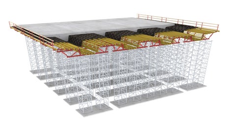 שולחנות יציקה ענקיים למפתחים גדולים ניתנים להרכבה באמצעות קורות הפלדה המיוחדות מסוג RCS ובאמצעות מוטות מסבך מתכווננים מסוג SLS.